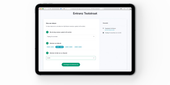 Behalve kwaliteit en veiligheid zet Entranz met de Analyse Portal in op gebruiksgemak. Mulder: “De oplossing is als het ware een one-stop-shop voor teststraten. Het opzetten van het platform is in enkele minuten gebeurd. Vanaf dat moment kunnen organisaties tijdsloten en capaciteit toewijzen aan één of meerdere testlocaties. Iedere bezoeker ontvangt per mail een aankoopbewijs van een specifiek tijdslot, dat een medewerker contactloos bij de ingang kan scannen. Op die manier proberen wij ook hun veiligheid te waarborgen.” Na het testen verwerkt de medische opgeleide analist de resultaten in een informatiesysteem, die pas na een dubbelcheck bevestigd kunnen worden. Direct na bevestiging ontvangt de testpersoon een beveiligde e-mail met de uitslag en vervolgadviezen. “Met deze procedure hopen wij bij te dragen aan een vertrouwd proces, voor zowel analisten als de Nederlandse burger”, aldus Mulder.