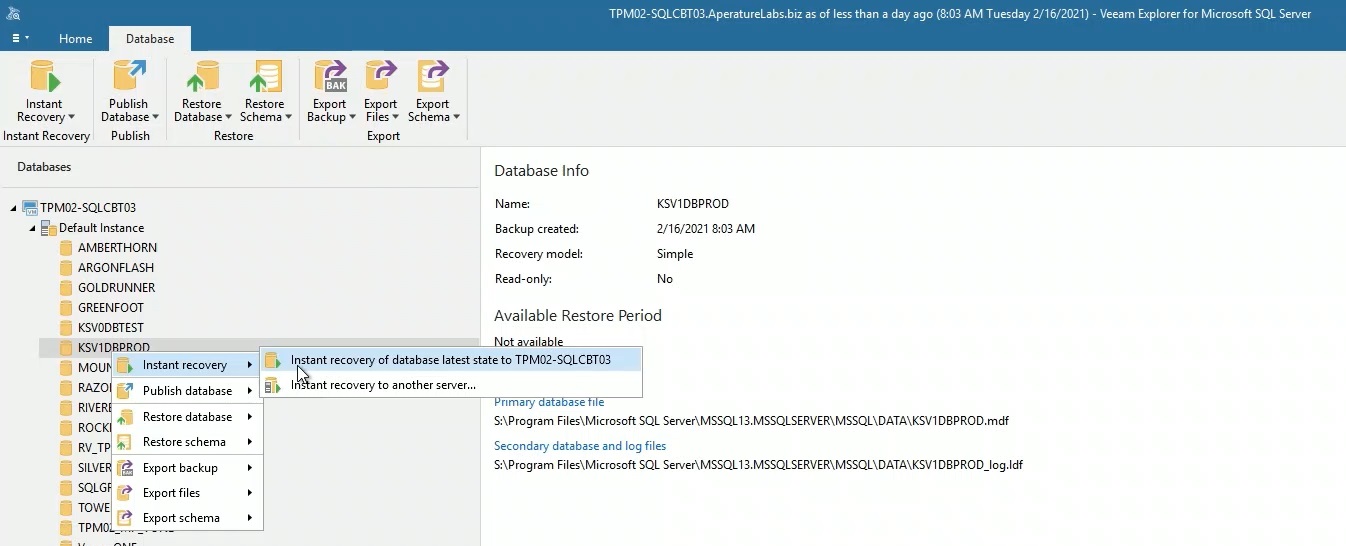 - Uitgebreide Instant Recovery: Bereik de laagste recovery time objectives (RTO’s) met krachtig en direct herstel voor Microsoft SQL, Oracle databases en NAS file shares van de pionier van Instant VM Recovery.