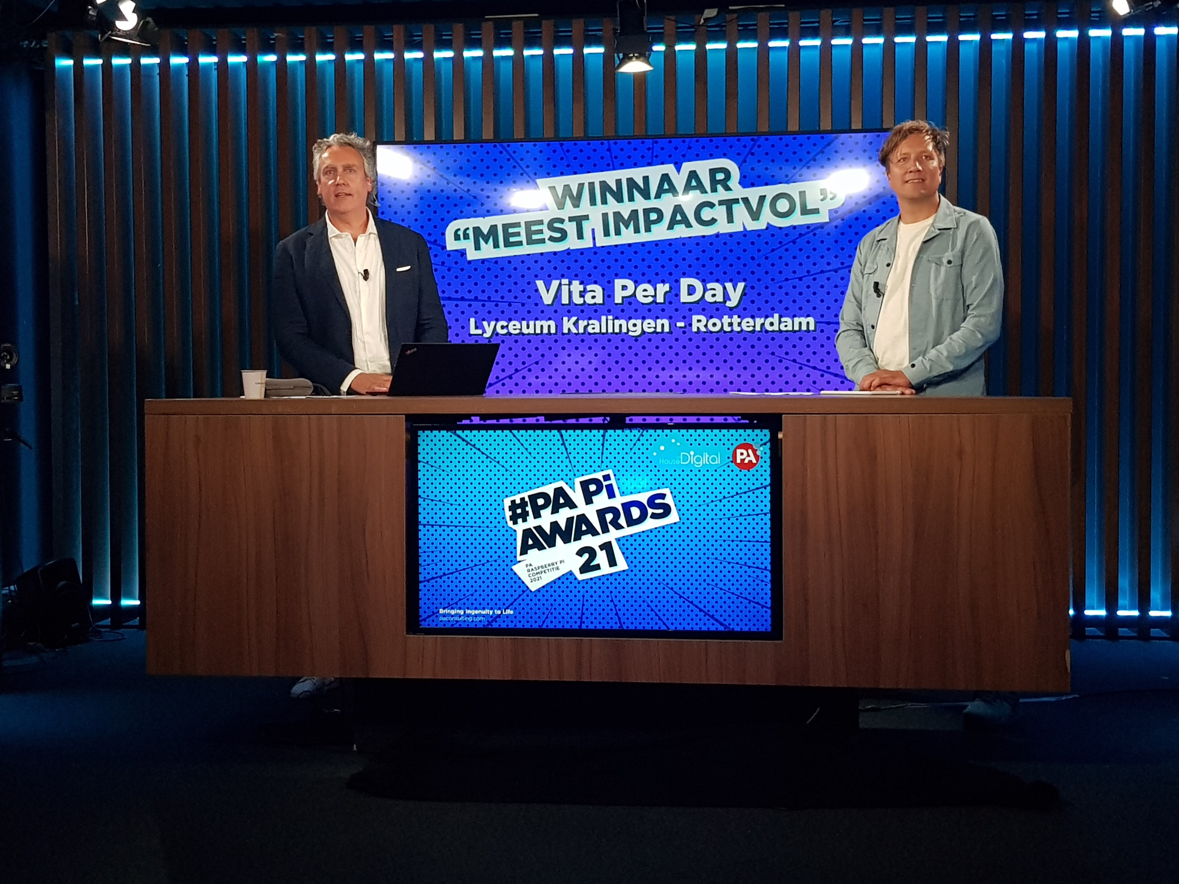 De prijs voor de meest impactvolle uitvinding is gewonnen door Vita Per Day, van het Lyceum Kralingen te Rotterdam. In de woorden van een teamlid: “Een probleem met thuiswerken is dat veel mensen niet vaak genoeg naar buiten gaan, en dat leidt tot vitamine D-tekorten. Daar hebben wij iets op bedacht.” De UV-lamp die zij hebben gemaakt geeft op basis van leeftijd en huidskleur een specifieke dosis straling, waardoor een gezonde hoeveelheid vitamine D kan worden opgenomen. Hiermee droegen zij van alle inzendingen het meest bij aan het thema ‘innoveren voor een betere wereld’.