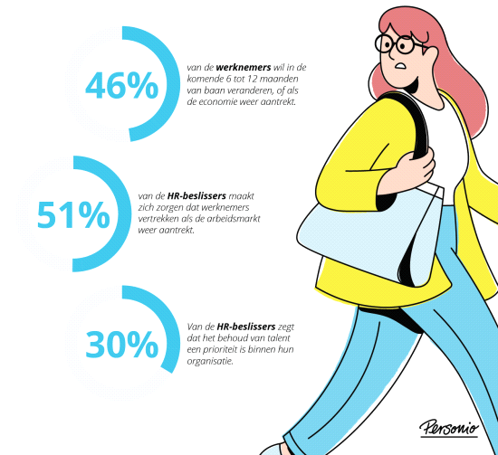 - Onderzoek door Personio wijst uit dat bijna de helft (46%) van de ondervraagde werknemers in de komende twaalf maanden van baan wil veranderen, of zodra de economie is aangetrokken