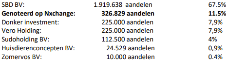 investeerders uit het eerste uur, waardoor de verdeling in aandelen er als volgt uitziet: