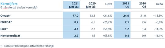 EBIT naar € 4,1 miljoen ten opzichte van € 2,7 miljoen in 2020, een toename van 51,9%