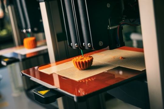 Een product of een gerecht laag voor laag opbouwen biedt ook in de voedingsmiddelenindustrie en de (groot)keuken vele nieuwe mogelijkheden. Normaal gesproken worden lastige en complexe vormen gemaakt met behulp van (bak)vormen of kant-en-klare platte vormen die op elkaar gestapeld worden. Met 3D printen is een uitgebreid scala van vormen en structuren mogelijk, waardoor de voedselbereiding er een spectaculaire, nieuwe manier van werken bij krijgt. Door het printen van bijvoorbeeld namen, logo’s en pictogrammen kan een gerecht ook een persoonlijke tintje krijgen.