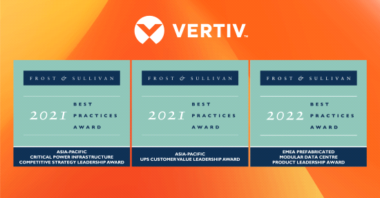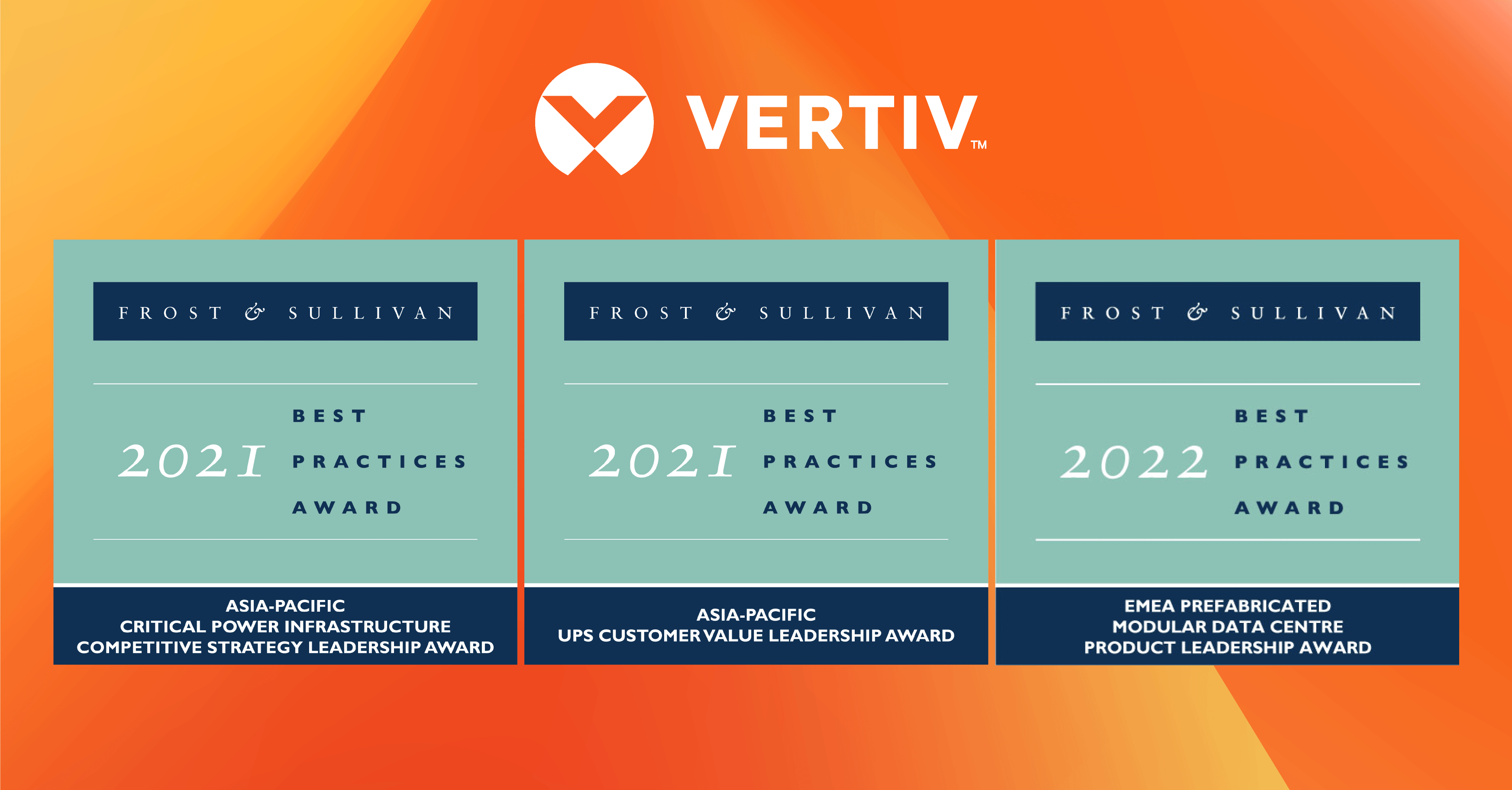 Vertiv (NYSE: VRT), een wereldwijde leverancier van kritieke digitale infrastructuur en connectiviteitsoplossingen, is door Frost & Sullivan met drie Industry Leadership Awards bekroond. Het marktonderzoeks- en adviesbureau prees Vertiv om zijn productleiderschap in de markt voor prefabricated & modular (PFM) datacenters in de regio EMEA. Ook werd het leiderschap als het gaat om concurrerende strategie en klantwaarde in de markt voor bedrijfskritische stroomvoorziening in de regio Asia-Pacific beloond.