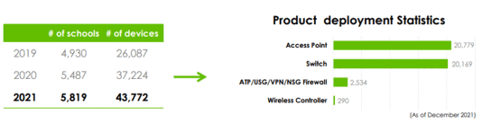 Hoofddorp, 29 juni 2022 – Net als in het bedrijfsleven vond er tijdens de pandemie ook in het onderwijs een digitale transformatie plaats. Leerlingen die op lange termijn onderwijs op afstand volgen, kunnen thuis het ongestoorde, snelle en veilige internetcomfort ervaren dat Zyxel biedt. En dat willen ze natuurlijk ook op school. Zyxel heeft daarom de afgelopen jaren meer geïnvesteerd in de onderwijssector om studenten en docenten te laten profiteren van de nieuwste technologische voordelen. Dat heeft al geresulteerd in de ingebruikname van meer dan 43.000 apparaten op meer dan 5.800 scholen wereldwijd in 2021, allen geleverd door Zyxel.