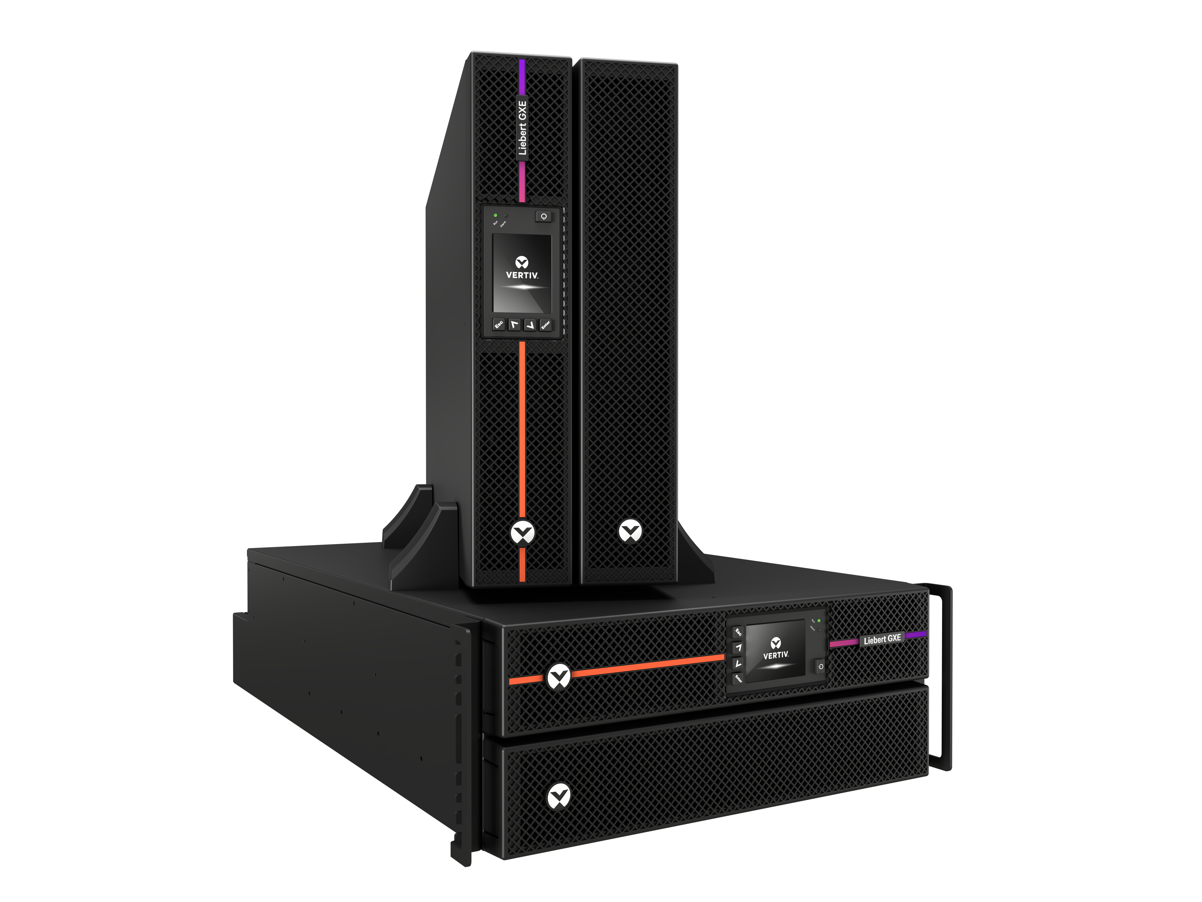 Liebert® GXE. Deze enkelfasige noodstroomvoorziening (UPS) met dubbele conversie is verkrijgbaar in modellen met een vermogensklasse van 6 en 10 kVA. Het systeem biedt ondersteuning voor een torenopstelling of rackmontage. Het systeem is ontwikkeld om betrouwbare stroomvoorziening te realiseren voor gedistribueerde IT-netwerken en edge computing-toepassingen in diverse sectoren, zoals de grootzakelijke markt, overheidssector, het onderwijs, de productie-industrie, financiële sector en detailhandel. De Vertiv™