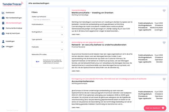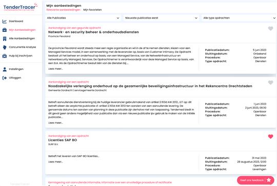 - Geselecteerde aanbestedingen apart voor je neergezet