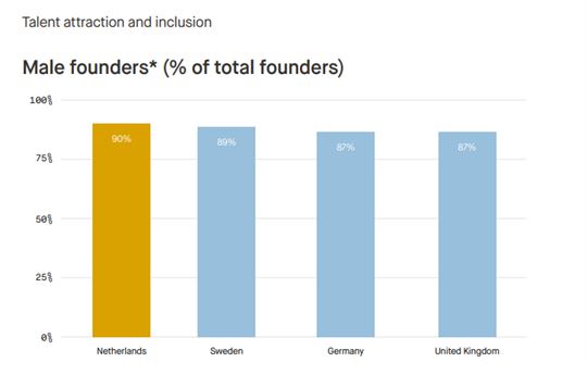 Nederland doet het op het punt van genderdiversiteit in de techbranche slechter dan Zweden (89%), Duitsland (87%) en het Verenigd Koninkrijk (87%).