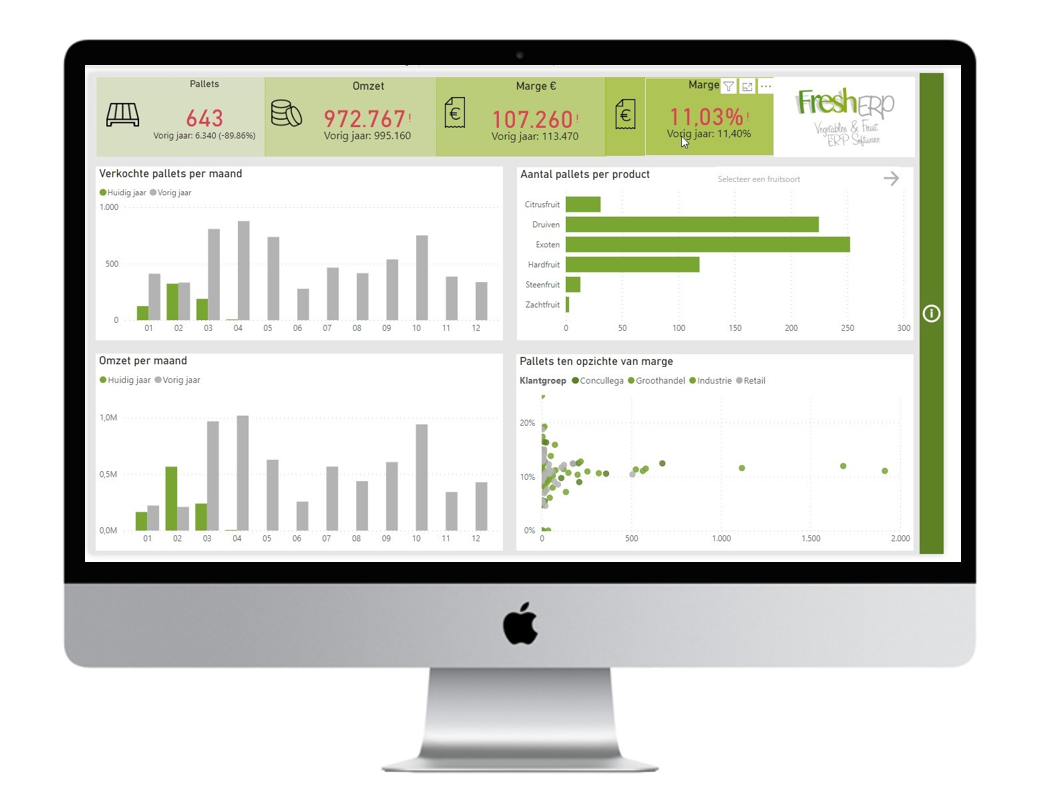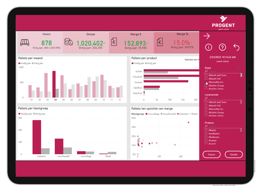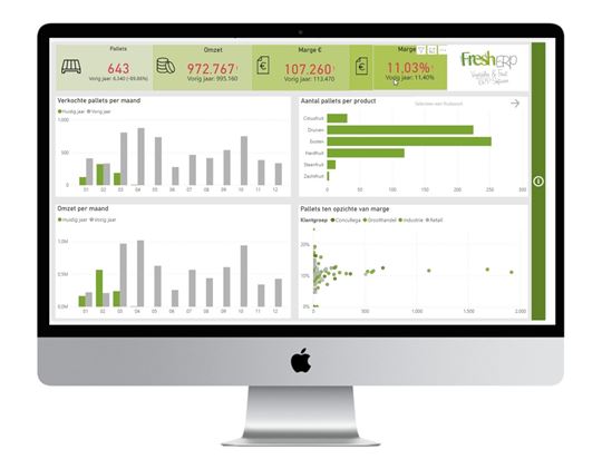 In de achterliggende periode is door betrokken partijen geïnvesteerd in het opzetten van koppelingen met de ERP-software én een datawarehouse. Hierdoor kunnen klanten eenvoudig worden bediend met standaard dashboards waarbij klantspecifieke data altijd actueel wordt gepresenteerd. Daarnaast kunnen dashboards op maat worden ontwikkeld aan de hand van specifieke klantwensen.