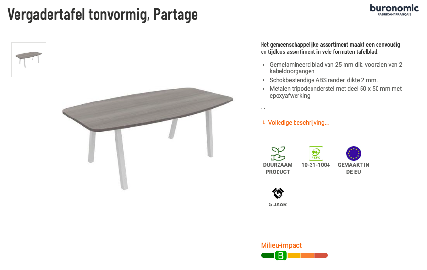 Voorbeeld PEIS-score op Manutan website