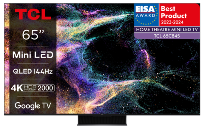 - De TCL 65C845 TV werd bekroond met de “BEST HOME THEATRE MINI LED TV 2023-2024” door EISA, vanwege zijn uitstekende audiovisuele kwaliteit en softwarefunctie, die zorgen voor uitstekende prestaties in elke denkbare gebruikerssituatie. Gebaseerd op de Mini LED- en QLED-achtergrondverlichtingstechnologie en ondersteund door AiPG 3.0-beeldkwaliteitsalgoritmen, levert de TCL C845 uitstekende prestaties op het gebied van beeldkwaliteit. En met helderheidsniveaus van 2000 nits bereikt het HDR-scherm van de C845 superieure contrasten.