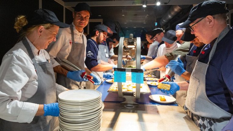 Een kijkje in de keuken tijdens het DNA Gala in 2023. De Basement Chefs van RAI Amsterdam kopen eten en drinken bewust in, met de focus op plantaardig en lokaal. Klik op de foto om het rechtenvrije beeld in hoge resolutie te downloaden.