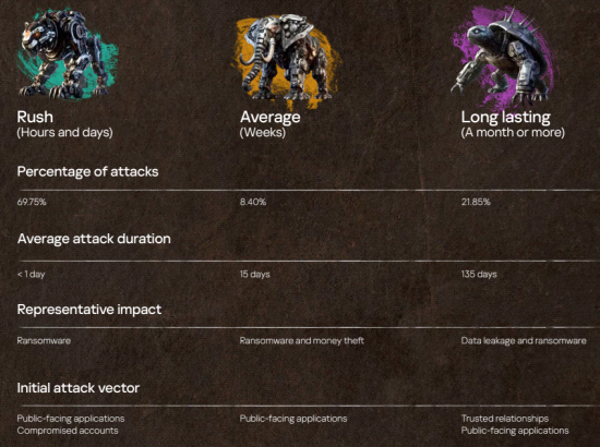 Uit het rapport wordt duidelijk dat cyberaanvallen die langer dan een maand duren 21,85% van het totaal uitmaakten. Dit is een stijging van 5,55% ten opzichte van 2022. Een opvallende trend in deze aanvallen was het gebruik van vertrouwde relaties als primaire methode. Aanvallen waarbij gebruik werd gemaakt van vertrouwensrelaties kwamen al eerder voor, maar in 2023 is de frequentie hiervan toegenomen tot 6,78% van het totale aantal aanvallen.