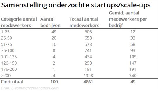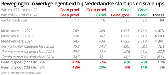Dat blijkt uit onderzoek van digitaal marketing bureau E-commercemanagers.com uit de top 100 SaaS startups in Nederland. De totale werkgelegenheid onder de 100 onderzocht Software As A Service bedrijven nam nog wel toe met 3,4% (4.861 in april’24 vergelijken met 4.703 in mei’23). Echter die groei was beduidend minder dan de 15,5% groei de startups en scale-ups nog de 12 maanden daarvóór behaalden. Procentueel is dat een 78% lagere groei.