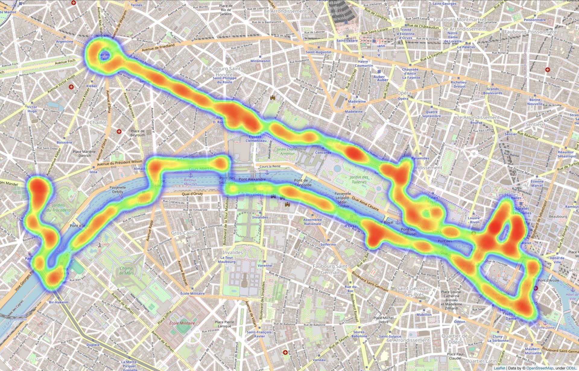 *De onderzochte gebieden zijn onder andere: Arc de Triomphe, Avenue des Champs-Élysées, Louvre Museum, Eiffeltoren, Notre Dame Kathedraal, Seine rivier, Trocadéro, Stade de France.