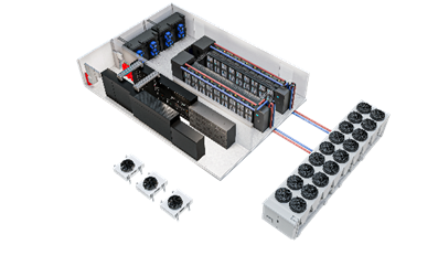 Vertiv™ MegaMod™ CoolChip. Deze prefab modulaire (PFM) datacenteroplossing met vloeistofkoeling is speciaal ontwikkeld om efficiënte en betrouwbare AI-computing mogelijk te maken. De oplossing kan op maat worden gemaakt om de platforms van toonaangevende leveranciers van AI-workloads te ondersteunen en kan naar behoefte van de klant worden uitgebreid. Door de kwaliteit en procesefficiëntie van de beste AI-ready technologieën in hun soort te combineren, kan MegaMod™ CoolChip de tijd die nodig is voor de implementatie van AI-kritieke digitale infrastructuur met 50% reduceren.
