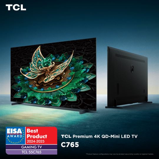 "De nieuwste generatie consoles en pc's heeft de prestatiegrenzen verlegd, wat betekent dat een even vooruitstrevende tv nodig is voor een optimale game-ervaring. De goed geprijsde 55C765 van TCL is klaar voor de taak. De gameplay is responsief, soepel en gedetailleerd, geholpen door de niveaus van helderheid en kleurdiepte die worden bereikt door TCL's Quantum Dot VA-paneel en Mini LED-achtergrondverlichtingssysteem. Op gamers gerichte functies, waaronder vooraf ingestelde beeldmodi, variabele schaduwverbetering en een richthulpmiddel om ervoor te zorgen dat u nooit uw doel mist, zijn toegankelijk via de verbeterde Game Bar-interface van TCL. Dit biedt ook in één oogopslag informatie over framesnelheden, HDR-status en meer. Voeg daar het door Onkyo ontworpen geluidssysteem van de 55C765 aan toe en je hebt een tv die gemaakt is voor al je gamemissies," aldus de EISA-jury.