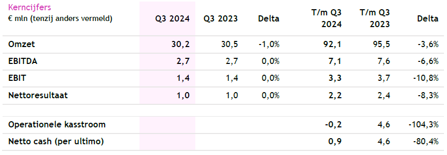 EBITDA daalt in de eerste negen maanden van 2024 naar € 7,1 miljoen