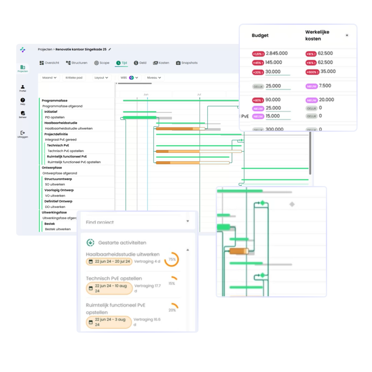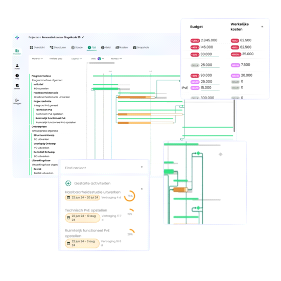 realtime integrale detailinformatie over scope, tijd en geld die projectleiders,