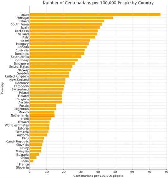 Volgens de Verenigde Naties zal het aantal honderdjarigen wereldwijd dit jaar stijgen naar 573.000, een opmerkelijke groei. Tegen 2050 kan dit aantal oplopen tot bijna 4 miljoen. De Verenigde Staten hebben het hoogste absolute aantal, gevolgd door Japan. Studies zoals de Okinawa Centenarian Study tonen aan dat veel Japanse honderdjarigen fysiek onafhankelijk blijven en een dieet volgen dat rijk is aan groenten en arm aan verzadigde vetten. "Een gezond microbioom lijkt ook een rol te spelen in een langer leven," aldus microbioloog Dr. Joachim Johansen.
