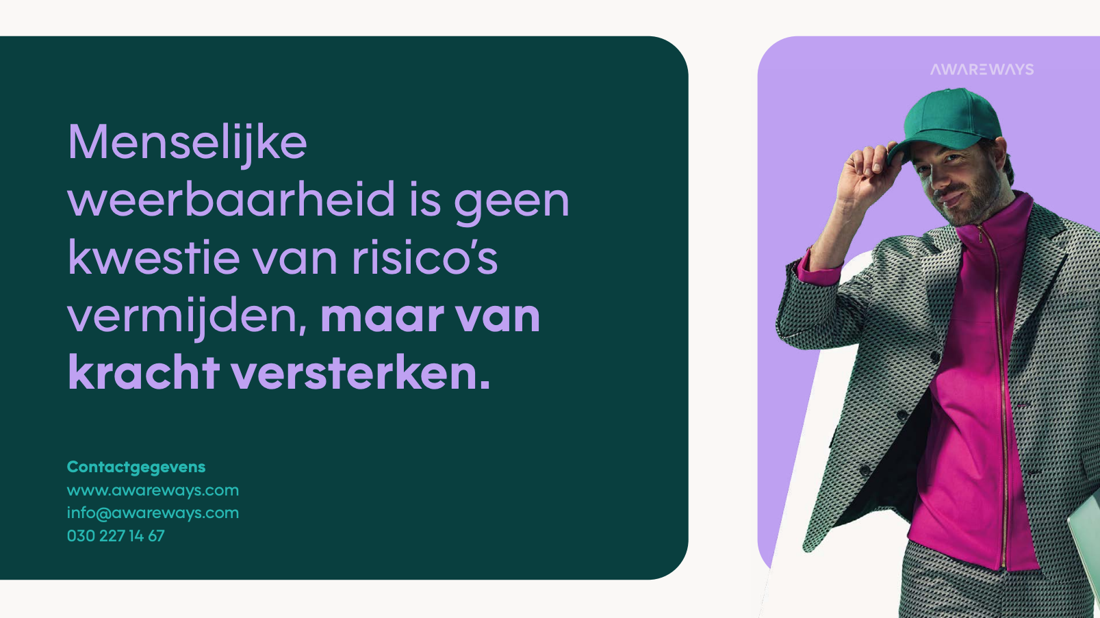 Awareways is sinds 2014 een toonaangevende organisatie op het gebied security- en privacy awareness. Met een unieke combinatie van gedragspsychologie, data-analyse en innovatieve trainingsmethoden helpt Awareways organisaties wereldwijd om veiligere en meer veerkrachtige werkculturen te creëren. Bij Awareways staat de menselijke factor altijd centraal.