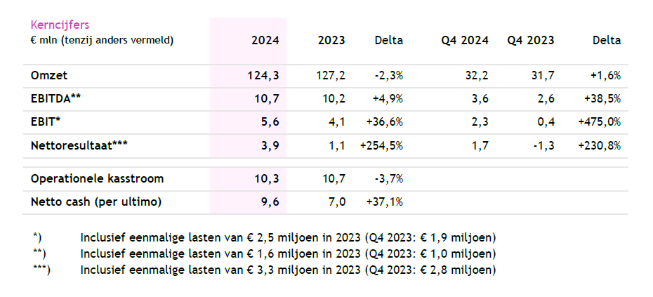 EBITDA stijgt naar € 3,6 miljoen, stijging wordt deels verklaard door de hoge eenmalige lasten in 2023
