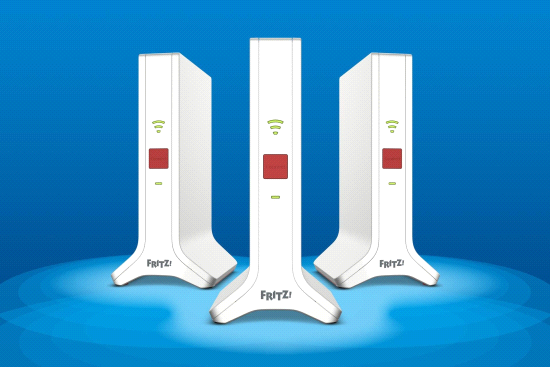 - Een Mesh Wi-Fi-systeem, bestaande uit 3 of 2 FRITZ!Repeater 3000 AX voor overal de beste Wi-Fi.