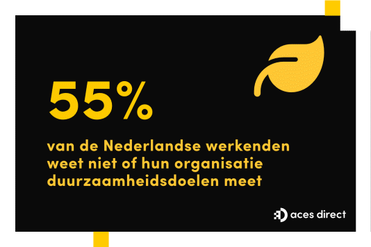 Aces Direct, op basis van onderzoek onder ruim 1.000 werknemers. Meer dan de helft van de werknemers (55%) weet niet of hun organisatie duurzaamheid meet. Daarmee dreigt een kloof te ontstaan tussen duurzame ambities in de boardroom en betrokkenheid op de werkvloer.