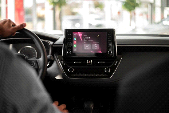 Met de CarPlay-widget kan je vanaf het scherm in de auto snel controleren of je deur vergrendeld of ontgrendeld is. Als er een deursensor is aangesloten, geeft de widget ook aan of de deur open of dicht is. Ook de batterijstatus wordt weergegeven. Er kunnen maximaal twee vergrendel- en ontgrendelacties aan de widget worden toegevoegd. Een simpele tik op het autoscherm activeert de actie onmiddellijk.