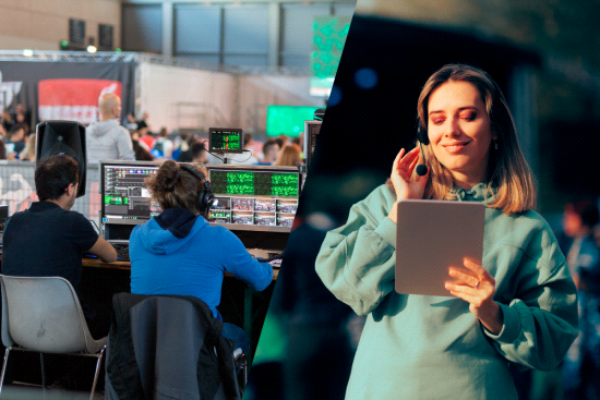 live-evenementen, sportproductie, televisie en xR-studio’s.