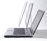 De nieuwe Flybook VM geeft een nieuwe dimensie aan het fenomeen laptop. Met haar schitterende, maar tevens praktische ontwerp begeeft zij zich op nieuwe paden. De Flybook VM heeft namelijk een scherm die niet alleen omhoog kan (wat al uniek is), maar ook nog eens naar voren en achteren kan bewegen. Een bijzonder unieke constructie draagt hier zorg voor. Hierdoor is het mogelijk om op plaatsen waar weinig ruimte is toch optimaal van een laptop gebruik te maken, met een perfecte kijkhoek op het beeldscherm. Zo is de Flybook VM ideaal in een vliegtuig, trein of bus. Doordat het scherm omhoog kan, verbetert ook de zithouding achter de laptop. De fraaie vormgeving blijkt verder uit de bijzonder slanke vormen en een minimaal gewicht van slechts 1.6Kg!