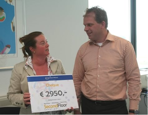 “In april vierden wij dat wij één jaar geleden onze nieuwe bedrijfsnaam SecondFloor hebben geïntroduceerd. Onze klanten zijn verrast met een verjaardagstaart; in de begeleidende brief stonden de actie en de code vermeld. We hebben genoeg reacties ontvangen om dit mooie bedrag te kunnen doneren!”