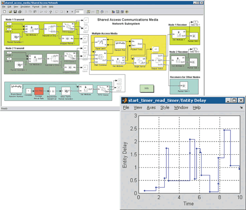 SimEvents modelleert functies en beperkingen van systemen die een netwerk van wachtrijen, servers, gates en switches bevatten. In tegenstelling tot conventionele discrete-event simulators geeft SimEvents 2 engineers de mogelijkheid om, op het gebied van datatransport, een onbeperkt aantal attributen aan de entiteiten die door het model stromen toe te voegen. Dit stelt engineers in staat om complexe algoritmen op individuele knooppunten te modelleren en deze vervolgens tot een groter systeem samen te voegen.