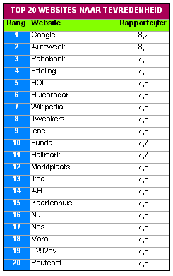 Top 20 websites naar tevredenheid