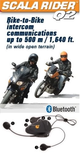 Hypermoderne bike-to-bike en bijrijder communicatie De primitieve tijden met spreeksleutels en Walkietalkies zijn verleden tijd. De Scala-Rider™ Q2 maakt het mogelijk voor motorrijders en passagiers om gelijktijdig te spreken en te luisteren. Motor naar motor communicatie is mogelijk tussen maximaal 3 motoren binnen een reikwijdte van 500m in open terrein. De Scala-Rider™ Q2 kan met alle andere Scala-Rider™ modellen communiceren via Bluetooth (reikwijdte 10 mtr.). Op deze manier kunnen vlekkeloos gesprekken worden gevoerd tussen bestuurder en bijrijder.