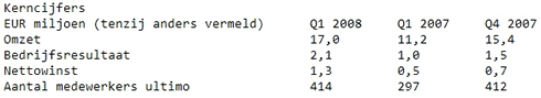 - Omzet stijgt met 51% ten opzichte van eerste kwartaal 2007; autonome stijging 26%