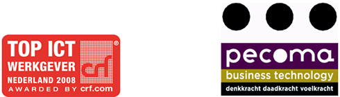 Amsterdam, 16 juni 2008 – Pecoma Business Technology is na onafhankelijk onderzoek van CRF, specialist op het gebied van internationaal onderzoek naar arbeidsvoorwaarden, uitgeroepen tot Top ICT Werkgever 2008. Dit keurmerk wordt alleen uitgereikt aan ICT werkgevers die voldoen aan de strenge toetsingscriteria. In totaal kregen 44 bedrijven dit keurmerk toegekend.Wie aan de strenge eisen voldoet, mag zich een jaar lang Top ICT Werkgever noemen. Vooral jonge, hoogopgeleide ICT professionals beschouwen dit als bewijs voor goed werkgeverschap en vinden dit belangrijk in hun overweging bij de keuze voor hun toekomstige werkgever. Pecoma heeft bewezen zich optimaal in te spannen om de loopbaan van jonge ICT-professionals te faciliteren. De ICT-dienstverlener wil samen met haar werknemers groeien en dit blijkt uit de hoge interne promotiekansen.