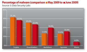 Amsterdam, 6 juli 2009 – De zomer is nog niet zo lang begonnen en het lijkt nu al alsof cybercriminelen hun activiteiten op een lager pitje hebben gezet. Uit de maandelijkse analyse van het G Data Security Lab blijkt dat het aantal virussen afgelopen maand is afgenomen met 30 procent. In juni heeft G Data 83.000 nieuwe virusvormen gevonden, terwijl de maand ervoor meer dan 120.000 nieuwe vormen van malware werden aangetroffen. De recessie lijkt hiermee ook te zijn toegeslagen in de wereld van eCrime.Oorzaak van de daling van 30 procent is niet alleen de start van de zomer, het is waarschijnlijker dat de economische crisis een impact heeft op cybercriminelen. “Elk jaar aan het begin van het vakantieseizoen daalt het aantal malware omdat er tijdens het vakantieseizoen minder actieve internetgebruikers zijn,” zegt Ralf Benzmüller, manager van het G Data Security Lab. “Ondanks de positieve ontwikkeling van de afgelopen maand, is dit waarschijnlijk slechts een tijdelijke daling. Het is onrealistisch om te denken dat cybercriminelen minder actief worden, voor cybercriminelen is geld de belangrijkste drijfveer en ze zullen altijd op zoek blijven naar manieren om geld te verdienen. Doordat prijzen voor spam en malware code drastisch gedaald zijn, verwachten we de komende maand een verdere daling in nieuwe malware. Maar uiteraard zullen er nog steeds pieken blijven, belangrijke evenementen en ander nieuws zijn een constante aanleiding voor criminelen om slachtoffers te zoeken,” aldus Ralf Benzmüller.