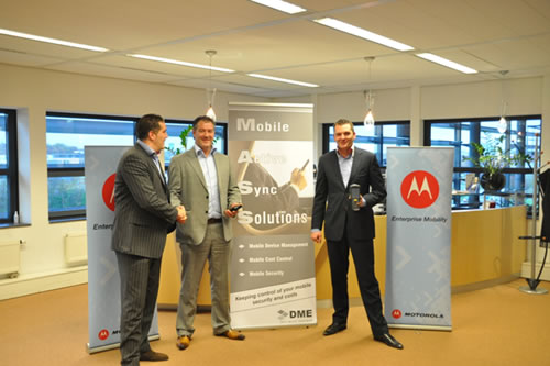 V.l.n.r. Ryan Duffels, Channel Account Manager van Motorola -Enterprise Mobility Solutions, Gert Heij, directeur van MASS B.V en David-John van den Heerik Territory Account Manager van Motorola -Enterprise Mobility Solutions.