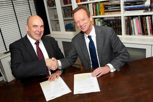 Ondertekening partnership met links Andre van der Doelen, algemeen directeur van VDD IQware en rechts Herman de Jonge, algemeen directeur bij UNIT4 Accountancy.