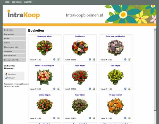 Topbloemen. Dit betekent dat bij Intrakoop aangesloten zorgorganisaties tegen kortingen tot 31% snel en eenvoudig bloemen kunnen laten bestellen. Na intekening op het raamcontract, ontvangt de zorgorganisatie een persoonlijk inlogaccount op