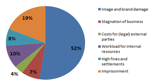 Bedrijven die falen in hun pogingen om te voldoen aan de Bribery Act kunnen rekenen op stevige sancties waaronder ongelimiteerde boetes en zelfs gevangenisstraffen. Gevangenisstraf en boetes vormen voor de juridische professionals echter niet de grootste zorg. Meer dan de helft geeft aan zich bij een mogelijk onderzoek op de eerste plaats bezorgd te maken over merk- en imagoschade.