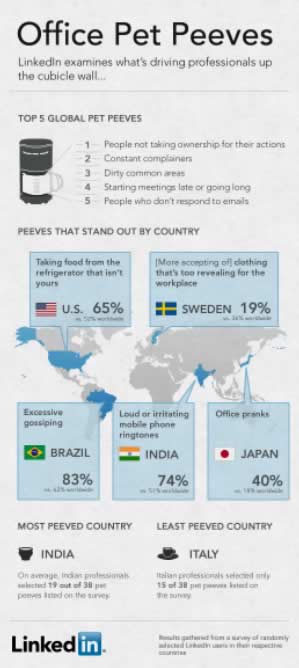 Download een infographic van het onderzoek en ontdek hoe je kunt omgaan met diverse kantoorirritaties op het blog van LinkedIn: