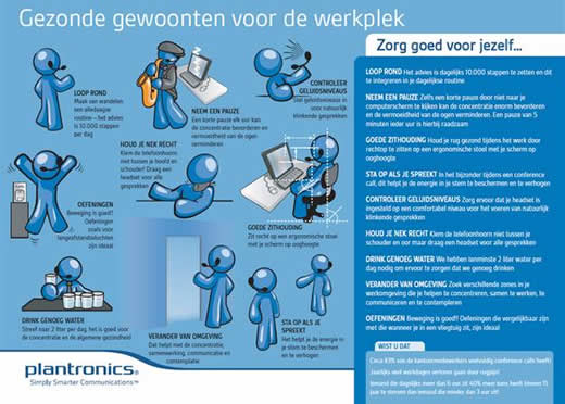 Uit dit onderzoek komt duidelijk naar voren dat kleine veranderingen ten aanzien van de werkplek, zoals het voorzien van alle werknemers met een headset, een gezondere werkomgeving creëert waardoor ziekte en afwezigheid afnemen”, aldus Norma Pearce EMEA HR Director bij Plantronics. “