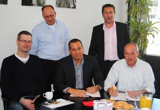 vlnr: Marcel Koning (Quality Contacts), Paul van Dam (Brigthware), Age de Jong (Quality Contacts), Niels Vader (Qualitey Contacts) en Jan Nouwens (Brightware)