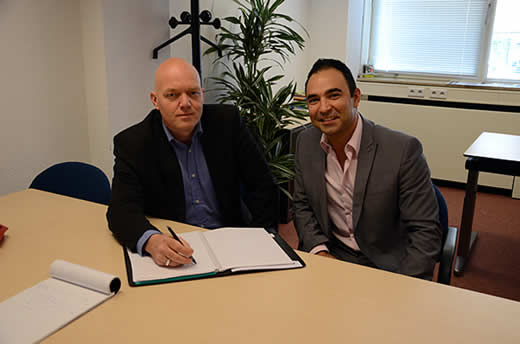 Manager Beheer en Support bij Dura Vermeer Sjoerd Wormgoor aan tafel met Managing Director van ITCheckpoint Rubens de la Plaza Benito.