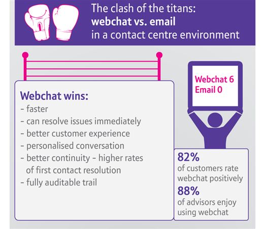 BT publiceerde vandaag de belangrijkste bevindingen uit een onderzoek naar het gebruik van de nieuwste communicatiekanalen door contactcenters. Een van de belangrijkste ontwikkelingen die BT ziet is het stijgende gebruik van webchat als communicatiekanaal tussen contactcentermedewerkers en klanten. Het onderzoek toont een groeiende bijdrage van webchat aan klanttevredenheid, arbeidsproductiviteit en kostenbesparing voor contactcenters.