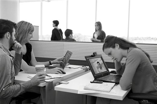 Your Brain at work, 2009). Chris Congdon, director research communictions bij Steelcase, voegt daar aan toe: ‘Effectieve samenwerking tussen collega’s is alleen mogelijk als mensen daarnaast ook tijd en ruimte hebben om de batterij weer op te laten en geconcentreerd en individueel te kunnen werken.’