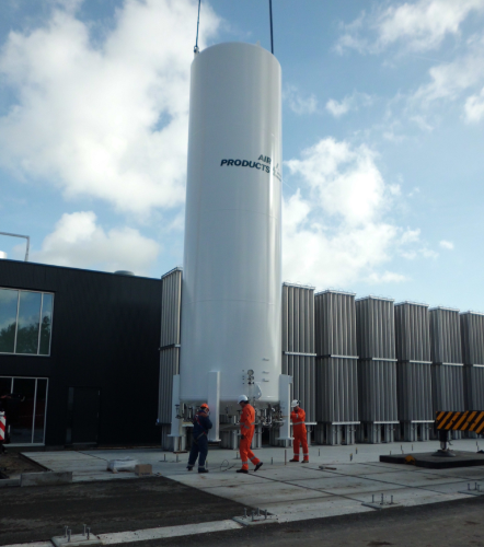 De bouw van het nieuwe vul- en distributiecentrum voor cilindergassen van Air Products op bedrijventerrein PolanenPark in de gemeente Haarlemmerliede vordert gestaag. Onlangs werd met de plaatsing van de voorraadtanks voor de opslag van luchtgassen het hoogste punt van de nieuwbouw bereikt. Ook de bedrijfshal en het kantoorgebouw zijn inmiddels klaar en is met de afbouw en de inrichting van de gebouwen begonnen. De verwachting is dat het nieuwe vul- en distributiecentrum in februari volgend jaar in gebruik genomen kan worden. De kantoorafdelingen verhuizen later naar Haarlemmerliede.