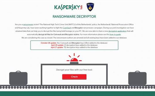 noransom.kaspersky.com. Hierdoor kunnen nu alle slachtoffers van de CoinVault en Bitcryptor gijzelingssoftware hun gecodeerde gegevens herstellen zonder een enkele bitcoin aan losgeld te betalen aan de cybercriminelen.